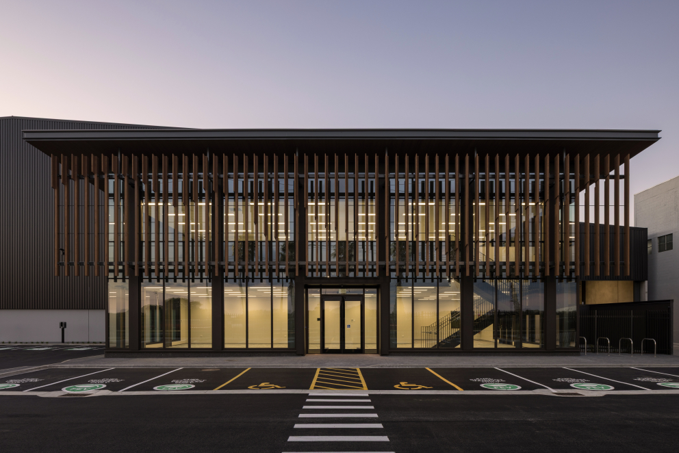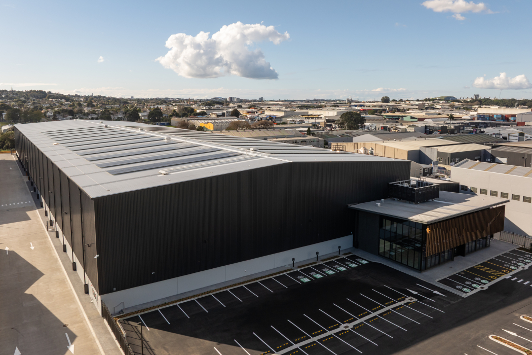 Warehouse A forms part of a wider sustainable precinct that includes one of New Zealand’s larger rooftop solar arrays, efficient LED lighting with smart controls, rainwater harvesting, low-carbon materials and very high construction waste diversion. Adjacent stream restoration, including weir removal, native fish relocation and bank stabilisation, further strengthens the environmental outcome.