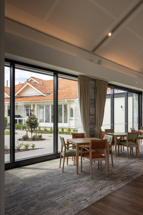 Creating a weathertight interface between the old and new building proved to be the project’s most difficult challenge, and took a lot of time, skill and collaboration to get right. Other notable features include a full commercial kitchen, two bathrooms, a function lounge and extensive decking that links to the bowling green on the estate’s western side.