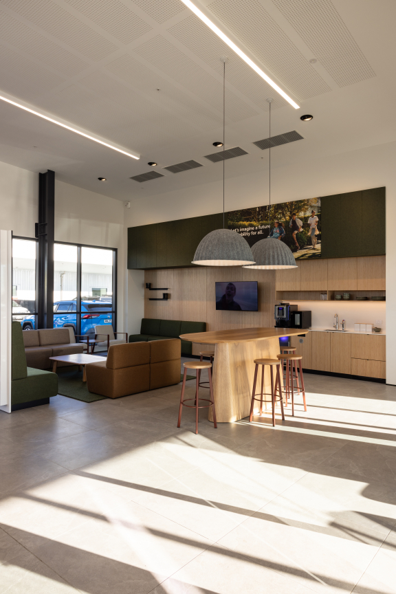 Alongside this work, the team built a new side to the building where it neighbours the showroom, and a breezeway connecting the two structures, then finished by creating a gleaming epoxy workshop floor. Construction of the new showroom was also challenged by the legacy of the past in the form of some public power cables unearthed on the site. In the end, this was a project that had a bit of everything, from the challenges of dealing with multiple authorities and agencies, to drainage and piling work, retaining walls, repurposing and new construction.